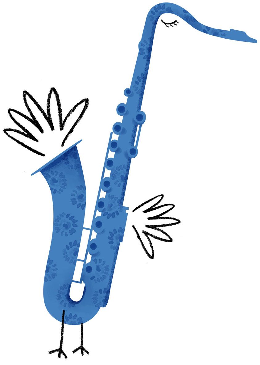 Los instrumentos de viento madera y metal se han convertido en los pájaros más hermosos y melodiosos del mundo: pistones y plumas, boquillas y picos de lo más variopintos… Sin embargo el malvado “Mister Time” ha capturado a Viento Azul y se ha apoderado de su secreto. Sin él, es imposible que cada cual vuele a su ritmo, a su estilo, a su aire… El cuento El secreto del Viento Azul es un encargo de la Orquesta y Coro Nacionales de España a su autora y narradora, Belén Otxotorena. Unos pocos y sencillos trazos bastaron para crear a estos pájaros-instrumento que tomaron forma corpórea y llegaron en su vuelo hasta Colombia, qué maravilla.