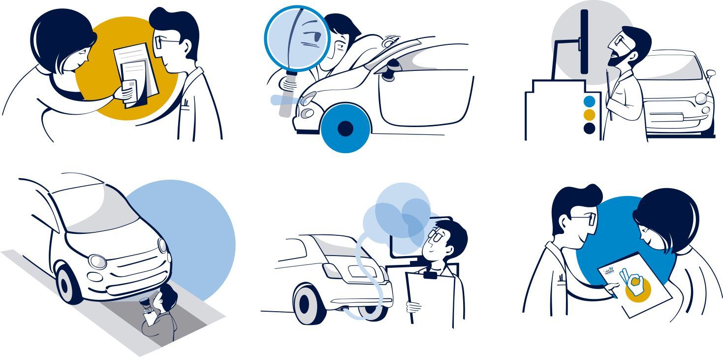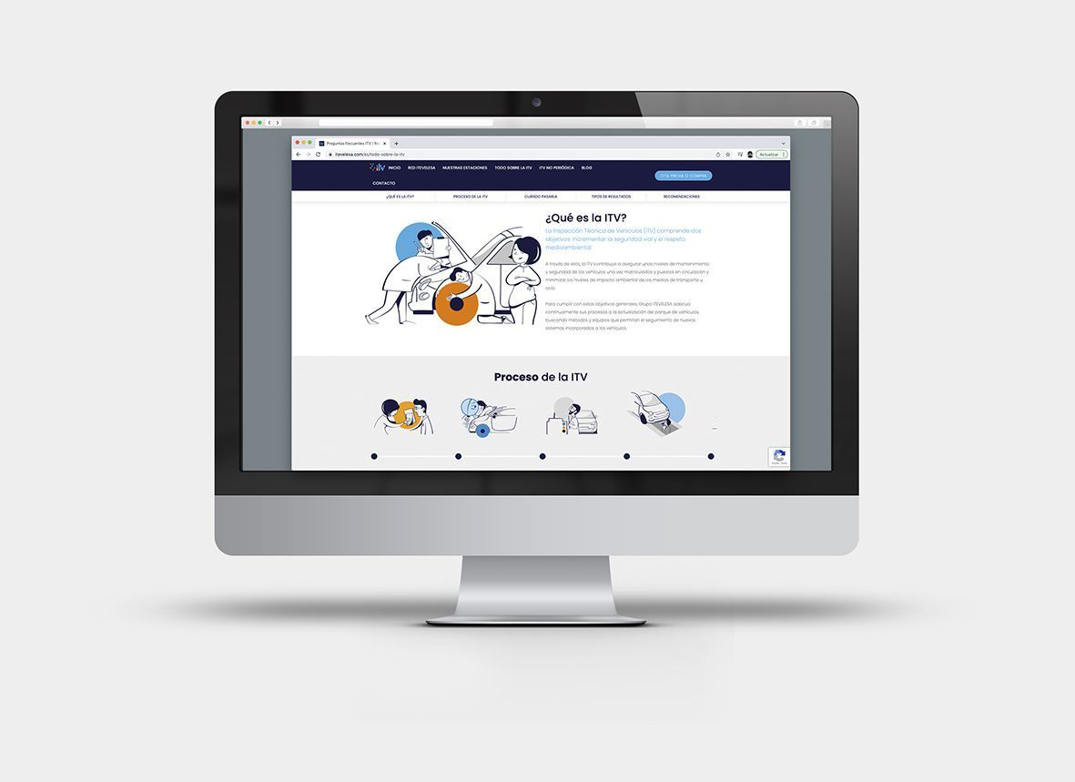 La red Itevelesa trabaja en las revisiones ITV de varios puntos de la geografía española. Para su web, la agencia Innwit me encargó una serie de ilustraciones sencillas que explicaran su proceso de trabajo.